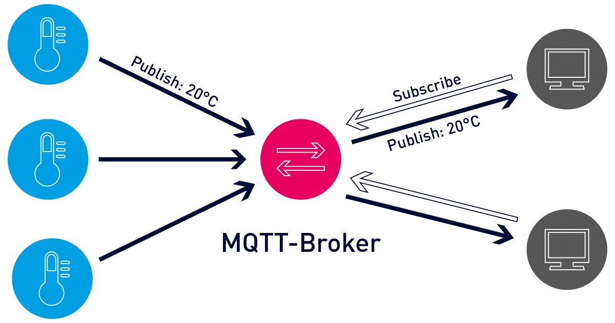 MQTT triển khai mô hình xuất bản/đăng ký bằng cách định nghĩa máy chủ và trình truyền tải như nêu ở phía dưới.
